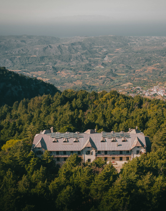 Mountains and Scenic Trails: The island's mountainous terrain includes majestic peaks like Mount Attavyros, which rises to 1,215 meters, and Prophet Elias (Profitis Ilias), standing at 800 meters, where a scenic road winds through dense trees. The area offers breathtaking views and includes charming stops such as Elafos Hotel, where visitors can pause to take in the landscape and explore nearby trails.